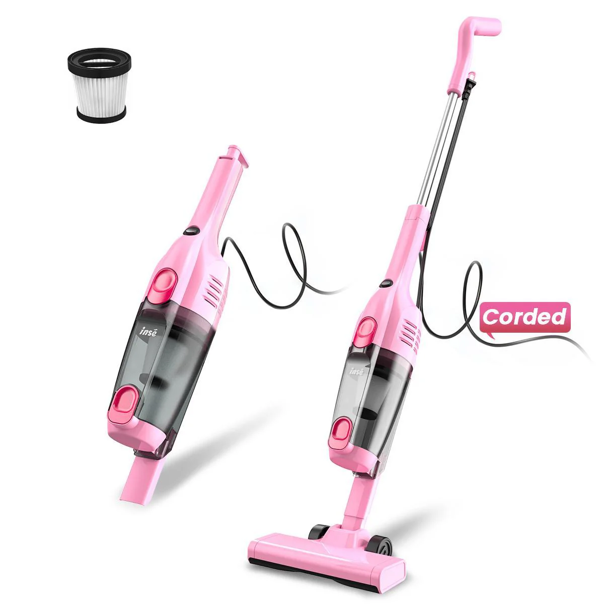 INSE R6X Corded Stick Vacuum Cleaner for Hard floors 15KPa Suction with 600W Motor